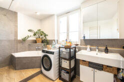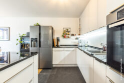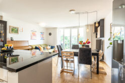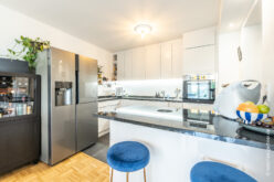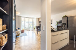 Besonders überzeugend ist der durchdachte Grundriss, den die Eigentümer nochmals optimiert haben: Das ehemalige Badezimmer wurde zur Küche und zum Wohnzimmer hin geöffnet, sodass heute ein modernes, offenes Wohn- und Esszimmer mit stilvoll integrierter Einbauküche entstanden ist. Die hochwertige Küche mit Granit-Arbeitsplatte und Marken-Elektrogroßgeräten wie z.B. das „Bora-Induktionskochfeld“ mit integriertem Abzug ist im Kaufpreis enthalten.