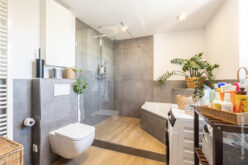 • Großes Tageslicht-Badezimmer mit Wanne und Regendusche