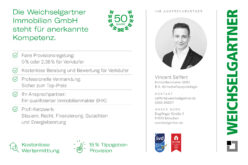 Wir möchten darauf hinweisen, dass sämtliche Fotos, Texte und grafischen Darstellungen ausschließliches Eigentum der Weichselgartner Immobilien GmbH sind und ohne unsere Genehmigung weder verwendet noch weitergegeben werden dürfen.